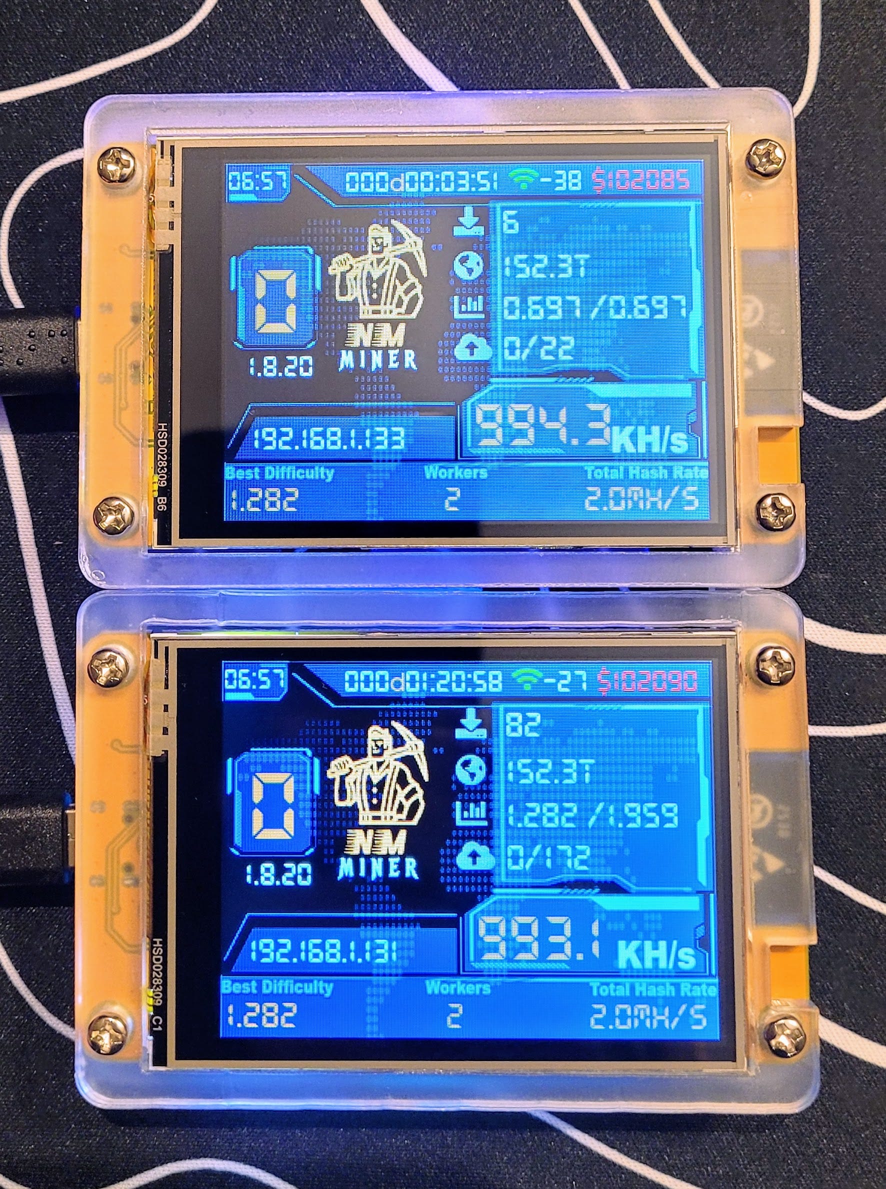 Since Bitcoin is running just north of $100,000 per coin at the moment, this seems a lot easier than buying lottery tickets! The miners run around the clock, so they continue to “work” while I am sleeping, driving, and doing all the other things that keep me busy. The ESP32 devices consume very little power. This is a cheap way to experiment with cryptocurrency.