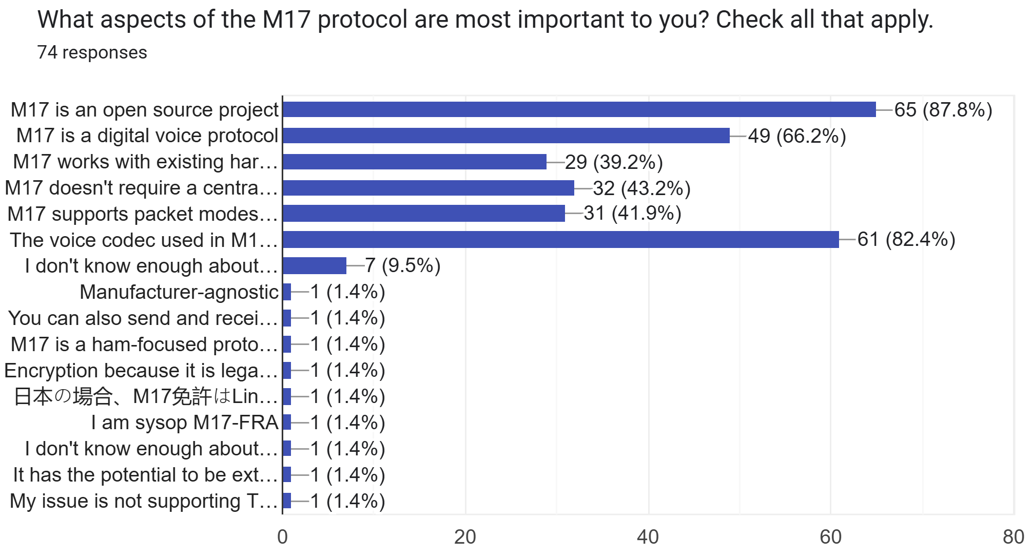 Last week, I asked folks to weigh in on the M17 protocol. As of Wednesday of this week, I found 74 responses: