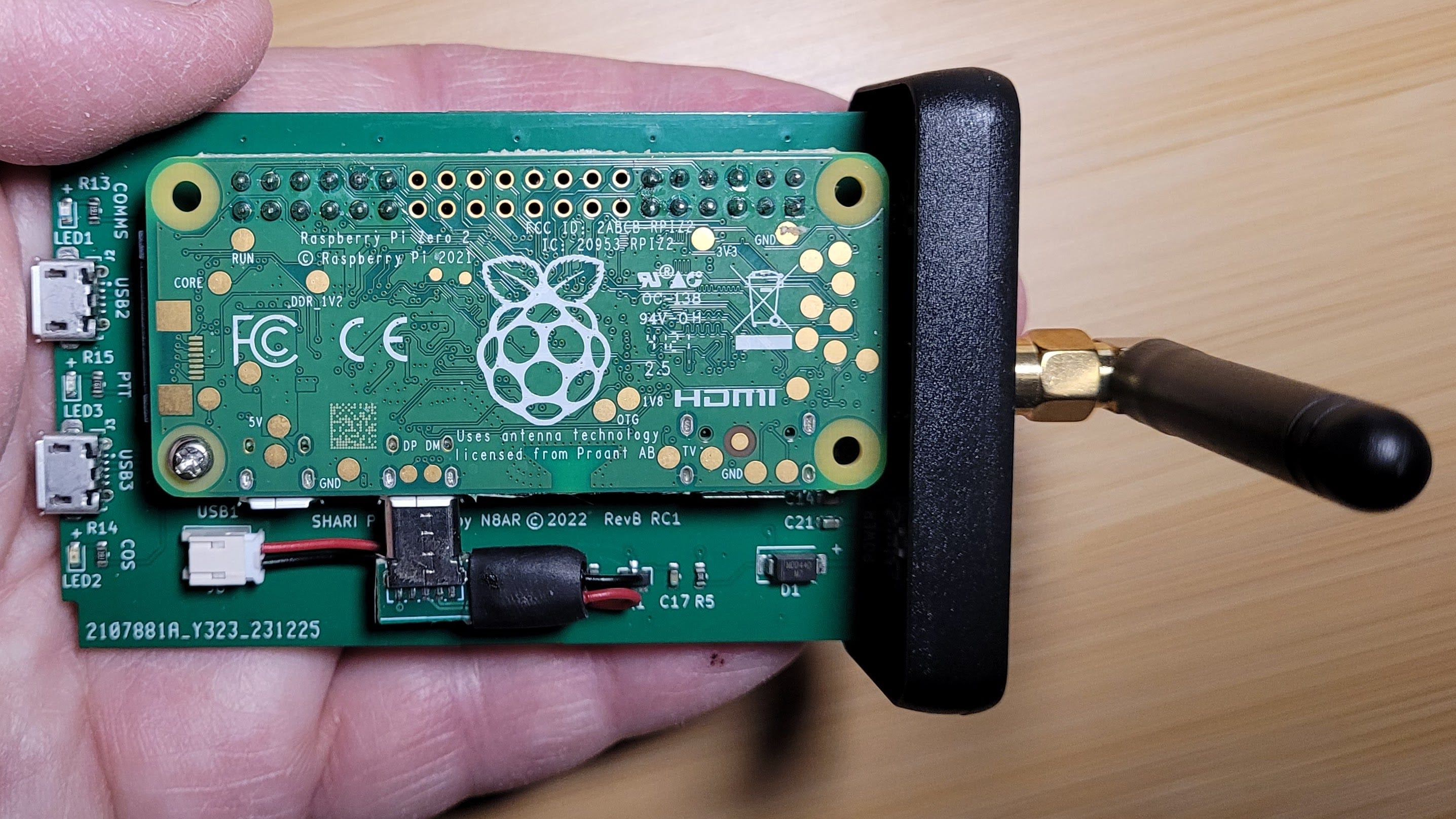 Separating the Pi Zero from the SHARI board involved removing one screw and wiggling the Pi to pull the GPIO pins out of the mating block on the SHARI. (Note: some SHARI nodes use a USB interface but this one uses the GPIO pins on the Pi.)