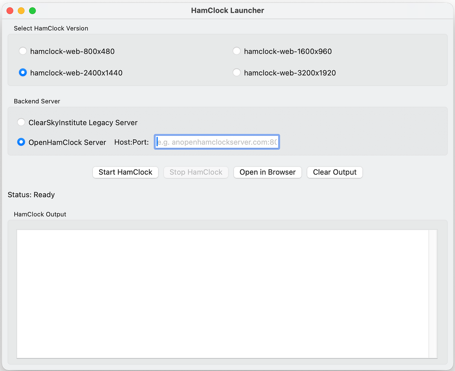 Hubert, KF0VWD has released HamClock Launcher – a macOS desktop app that makes it simple to run and monitor the HamClock web application on a Mac. It is distributed as a self-contained .app with everything included: the HamClock web binaries and all required libraries. No developer tools, MacPorts, XQuartz, or other prerequisites are needed.