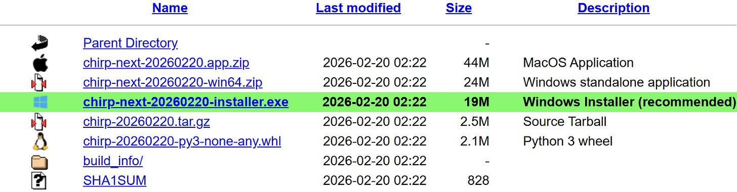 CHIRP-next: new release February 20