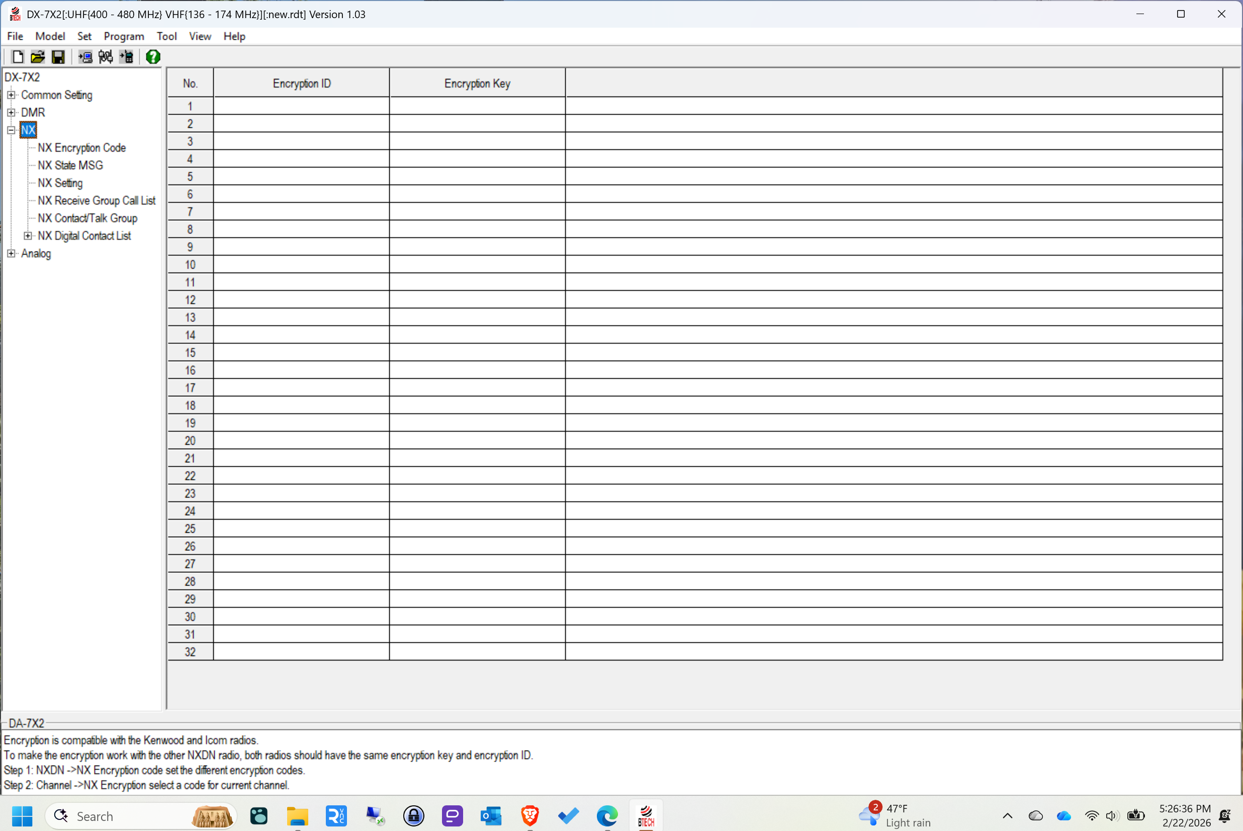 Of course, it’s not just a DMR radio — it also does analog FM. What you may not know is this radio has a secret: you can configure it for NXDN mode. To get there, you install the BETA firmware package to the radio. Once you reboot the radio and read it into the programming software, you’ll see “NX” in the left column. That is where NXDN settings are configured.