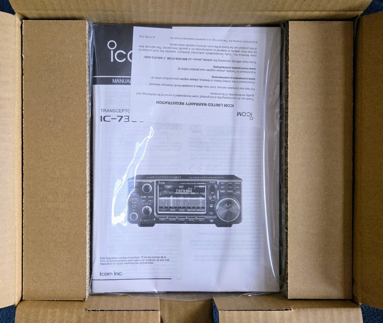 The radio arrived from HRO Portland with the Icom box inside a larger box. I’m not bothering to show that larger box, but here is the radio box before popping the lid: