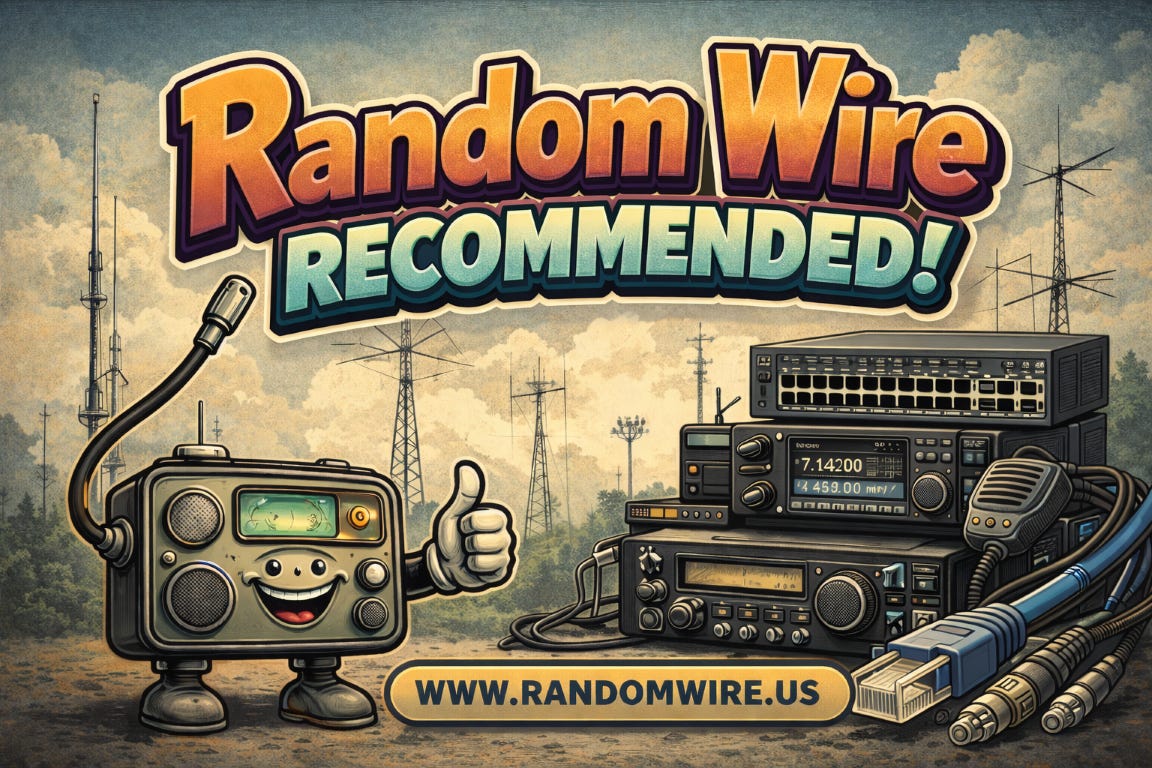 Among the things I appreciate are my amateur radio friends. Two such friends are in the forefront of my mind this week: Steve Stroh N8GNJ and Tina Stroh KD7WSF. They have finally overcome most of the challenges they faced in transitioning the Zero Retries newsletter to their new address and service: https://www.zeroretries.radio/. If you haven’t subscribed to the Zero Retries newsletter, you’re missing content that is always on the cutting edge of what is happening in the digital radio realm. Zero Retries is Random Wire Recommended.